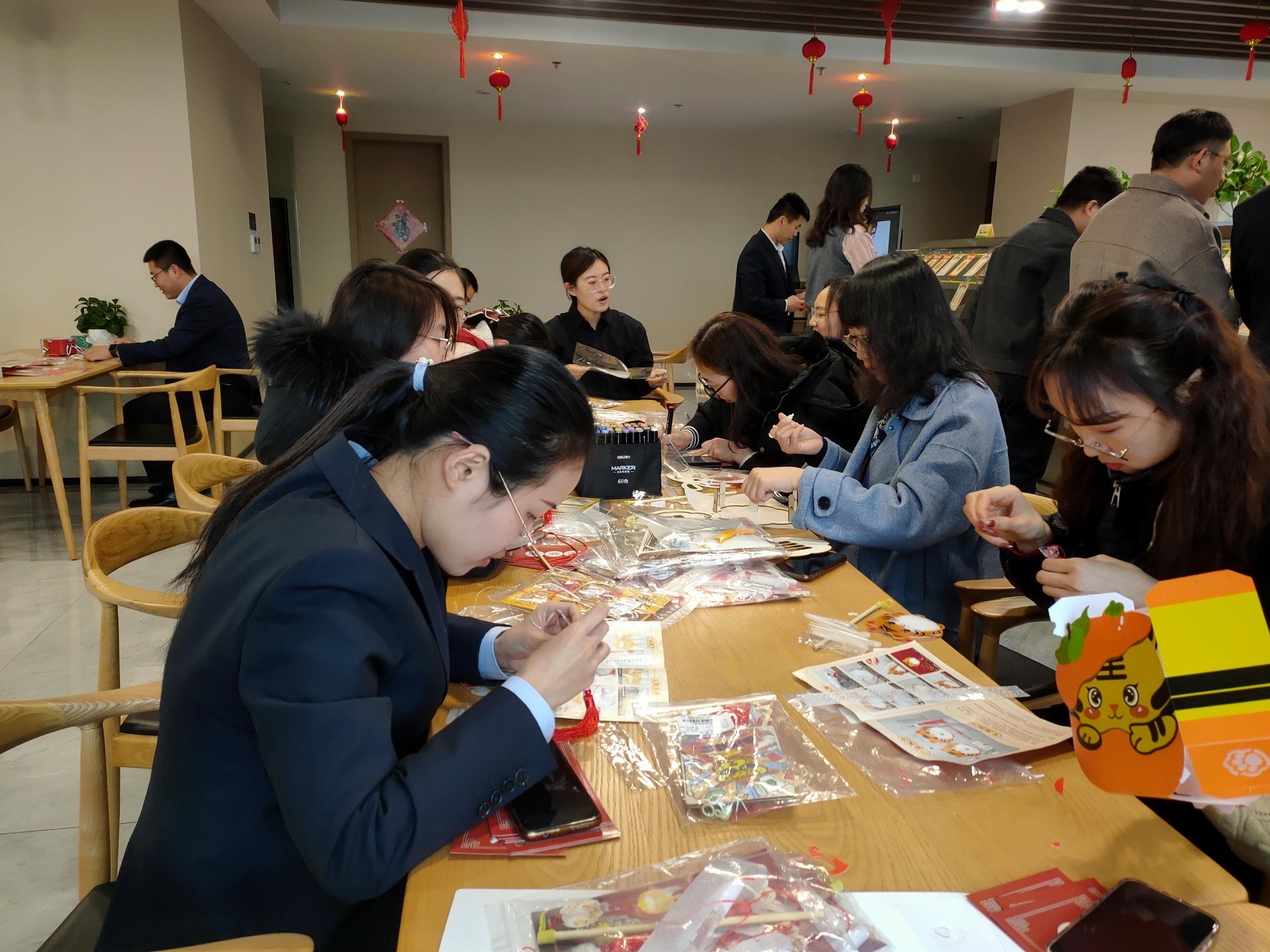 猜完燈謎,就到了大家最期待的做花燈環節。大家拿到材料包后,迫不及待地打開研究起來。集團的小哥哥小姐姐們小心翼翼修剪、鏤空好燈面,并仔細地將不同的燈面粘貼、拼接起來。最后給燈籠掛上流蘇,頂部裝好燈桿,內部插上彩燈后,一個精美的元宵燈就誕生了。“這是我親手做的燈籠,象征幸福、祥和,簡直太好看了!”做好燈籠的邵山成就感滿滿,興奮地和燈籠合影留念。