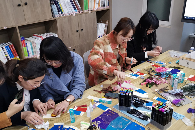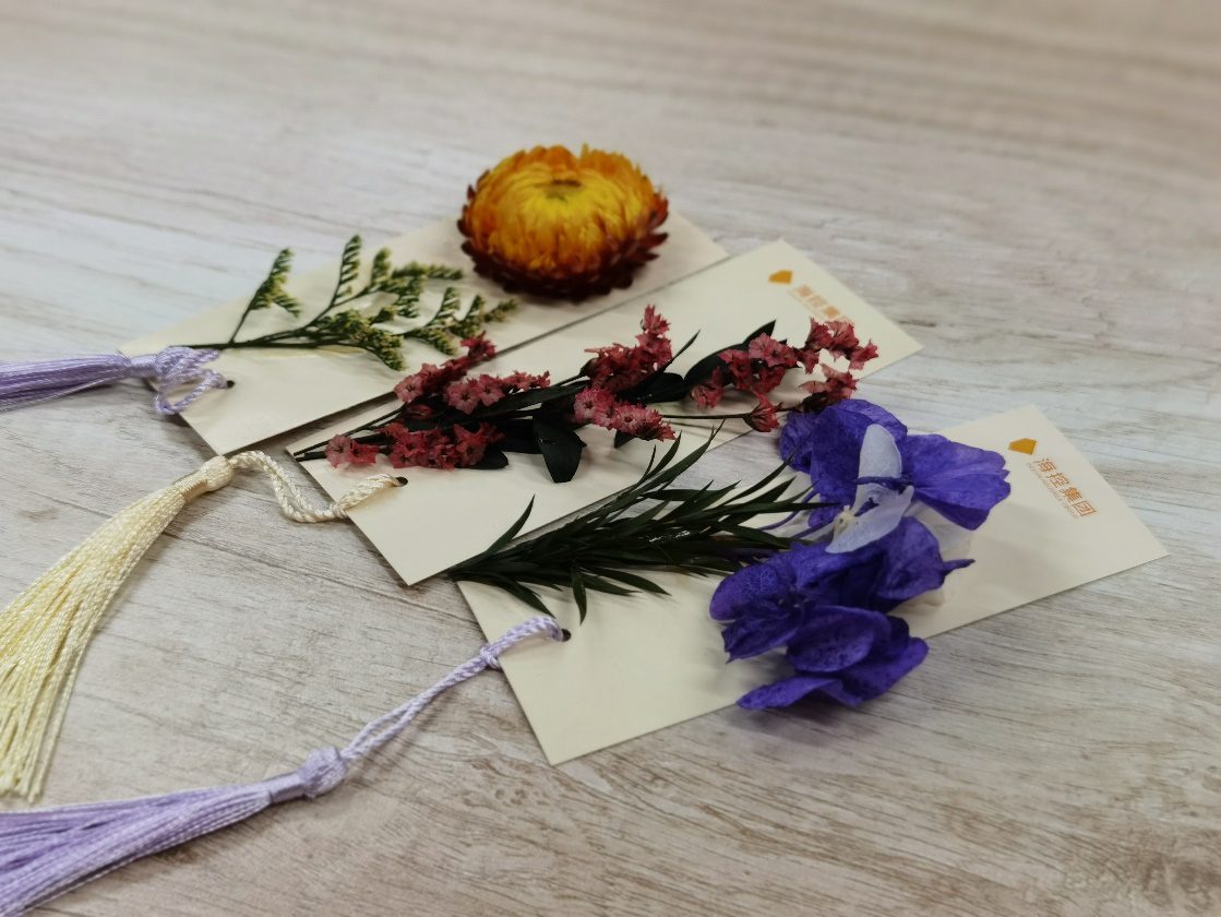 現(xiàn)場(chǎng)擺放有集團(tuán)定制logo書(shū)簽、空白書(shū)簽、干花和各色馬克筆。在學(xué)習(xí)小組和文藝小組的帶領(lǐng)下,大家用手中的畫(huà)筆和工具,在書(shū)簽上揮灑著創(chuàng)意與靈